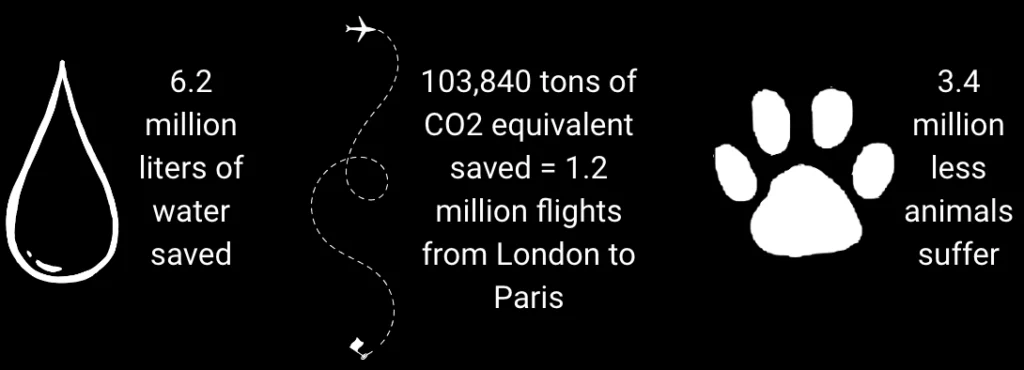 Did you know? For every one million participants who eat vegan for 31 days, there is a huge positive impact: